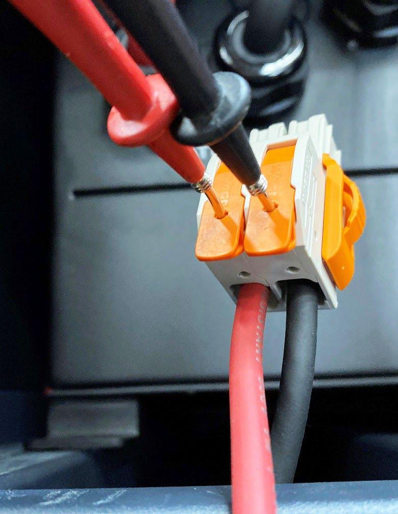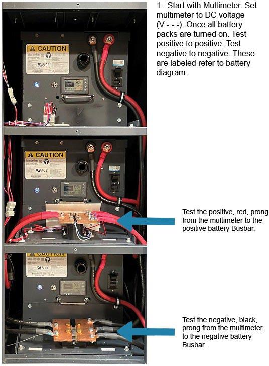 (5) While all the covers are off, do a system check. Check the battery modules for voltage, one at a time, turning on one breaker, then turn it off and move to the next battery module. Once all are clear and the voltage is around 51.2V, turn them all on.