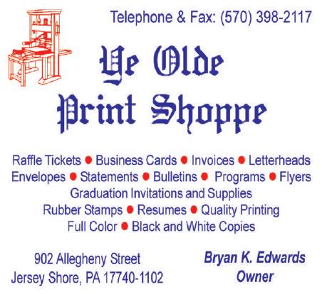 Clinton County Memorials & Gibson Monuments, 1061 Kryder Road, Mill Hall, was established in 1895. Owned by the Noll family, Andrew and Autumn, the business’s website boasts “a large selection of head stones to choose from, and if you don’t see what you like, we can get it.” They have a full line of granite and bronze monuments. Services include full cemetery installation, in-cemetery engraving, monument and foundation repairs and cleaning. Business hours are 9 a.m. to 4 p.m. Mondays through Fridays. They are closed Saturdays and Sundays. Appointments are encouraged. Walk-ins are welcome. For more information, visit gibsonmonumentco.com or call 570-726-3602.