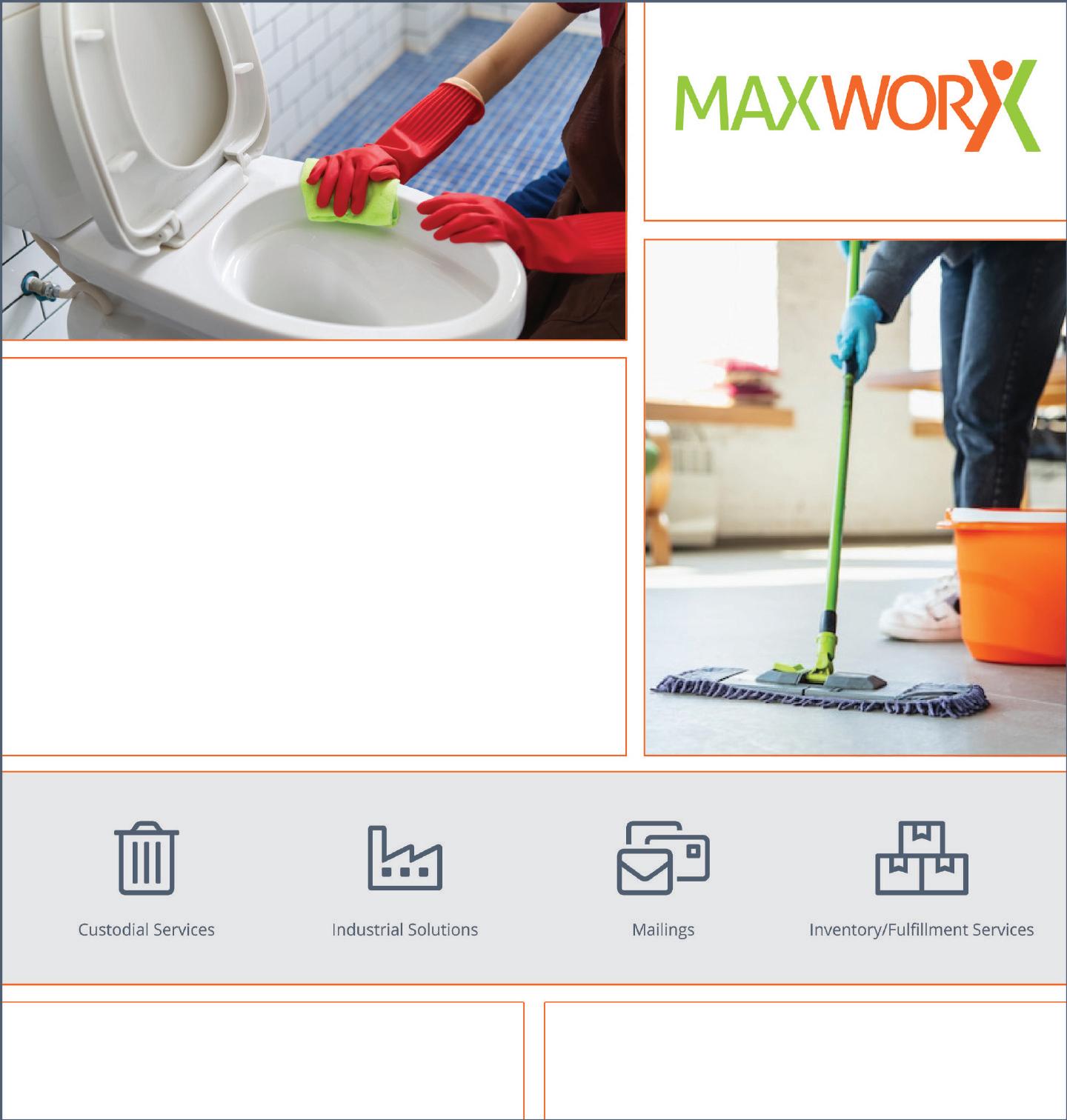 fulfillment, either in-house or at a client’s facility. In addition to industrial solutions, MaxWorx offers comprehensive custodial services. From full-facility electrostatic disinfecting and restroom sanitization to emergency cleanups, floor stripping and sealing, and upholstery cleaning, their team ensures a clean and safe environment.