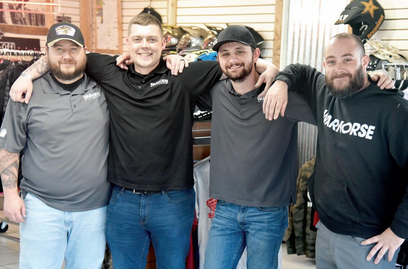 Above,theWarhorseteamfromlefttoright,Andrew Gerould,DevinBailey,DominickBraceyandJayClawson.Below,JeremyHallmanstherepairdepartmentas itschiefmechanic.