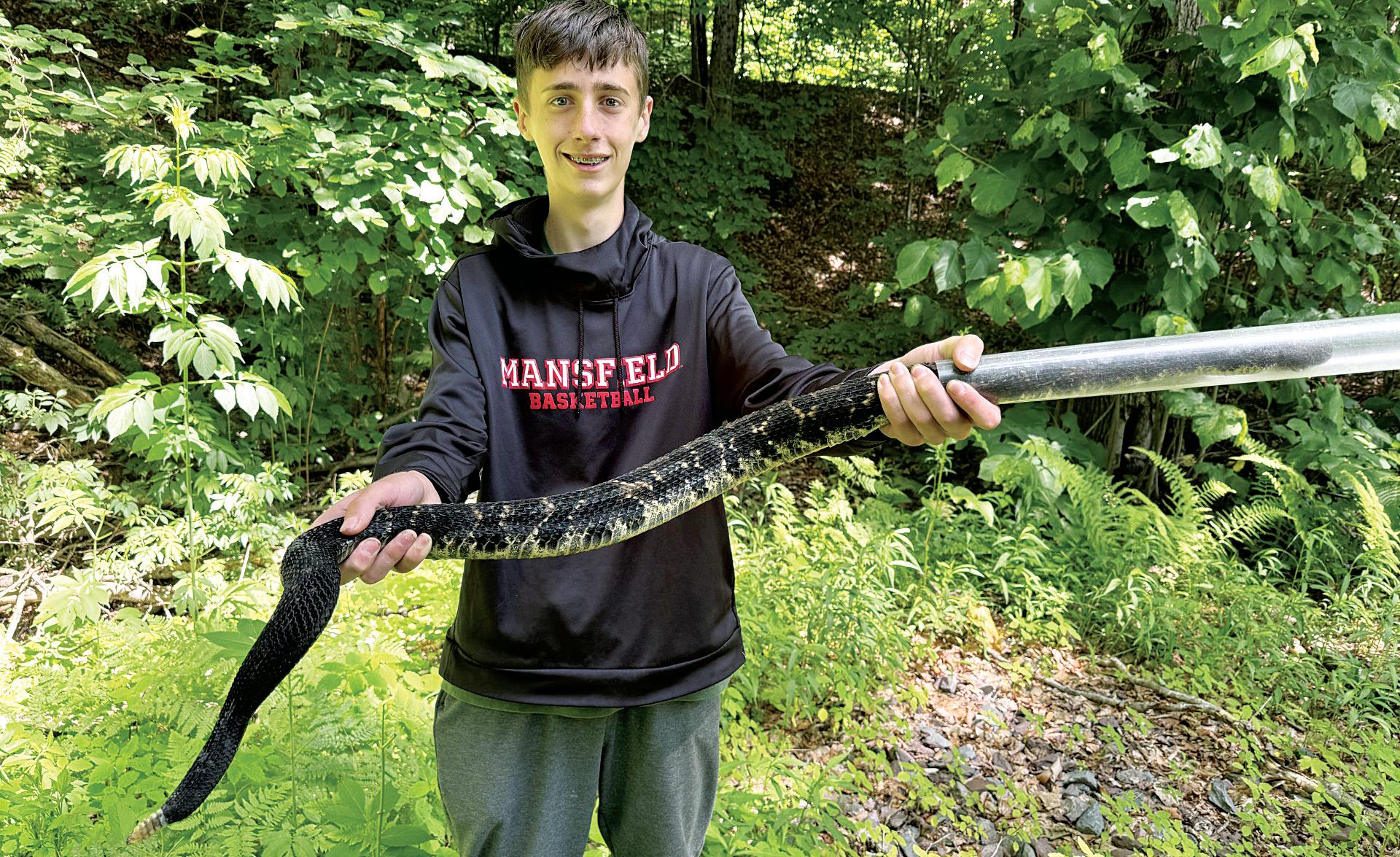 Luke Szentesy won the 2024 state championships for timber rattlesnake hunting and non-venomous snake hunting.