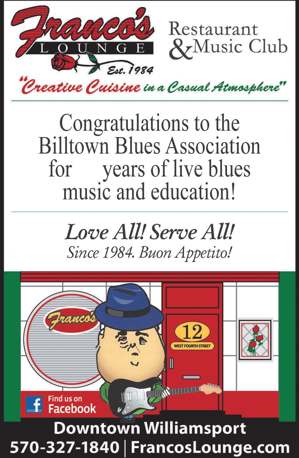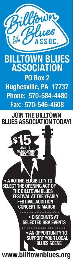 The 34th Annual Billtown Blues Festival officially begins at 6 p.m., June 21. The music continues at noon, June 22, offering world class blues music from 12 performances. All festival detail including ticketing options, onsite camping accommodation, a link to the festival’s host hotel in downtown Williamsport, and downtown bus service details, are available at www.billtownblues.org.