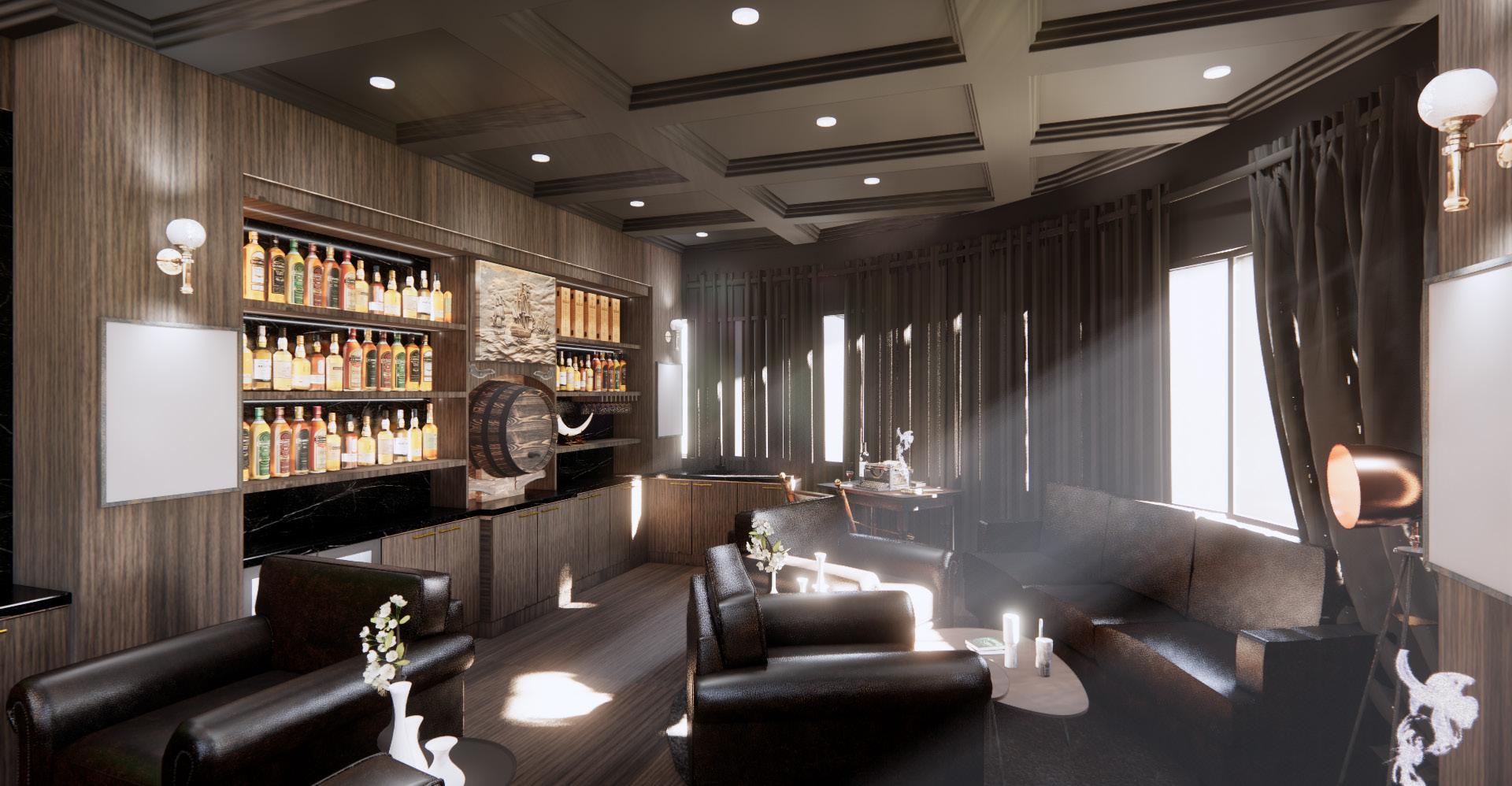 To achieve the desired "feel-at-home" ambiance, one of our main objectives was to establish a welcoming sense of arrival. We were fortunate to have a large lobby space to work with, which allowed us to implement zoning and visual separation. The expansive area was divided into three distinct zones: arrival, wait, and relax. To visually differentiate these areas, we incorporated a variety of materials throughout the space, making it easy for users to naturally distinguish the different purposes of each zone. Adding to the project's unique character, our clients were whiskey enthusiasts who enjoyed bonding in lounges after work hours. They expressed their desire for a speakeasy to be included within the office, which we enthusiastically embraced. This surprise element became a delightful and fun addition to the overall design, providing a hidden retreat for the partners and their guests.