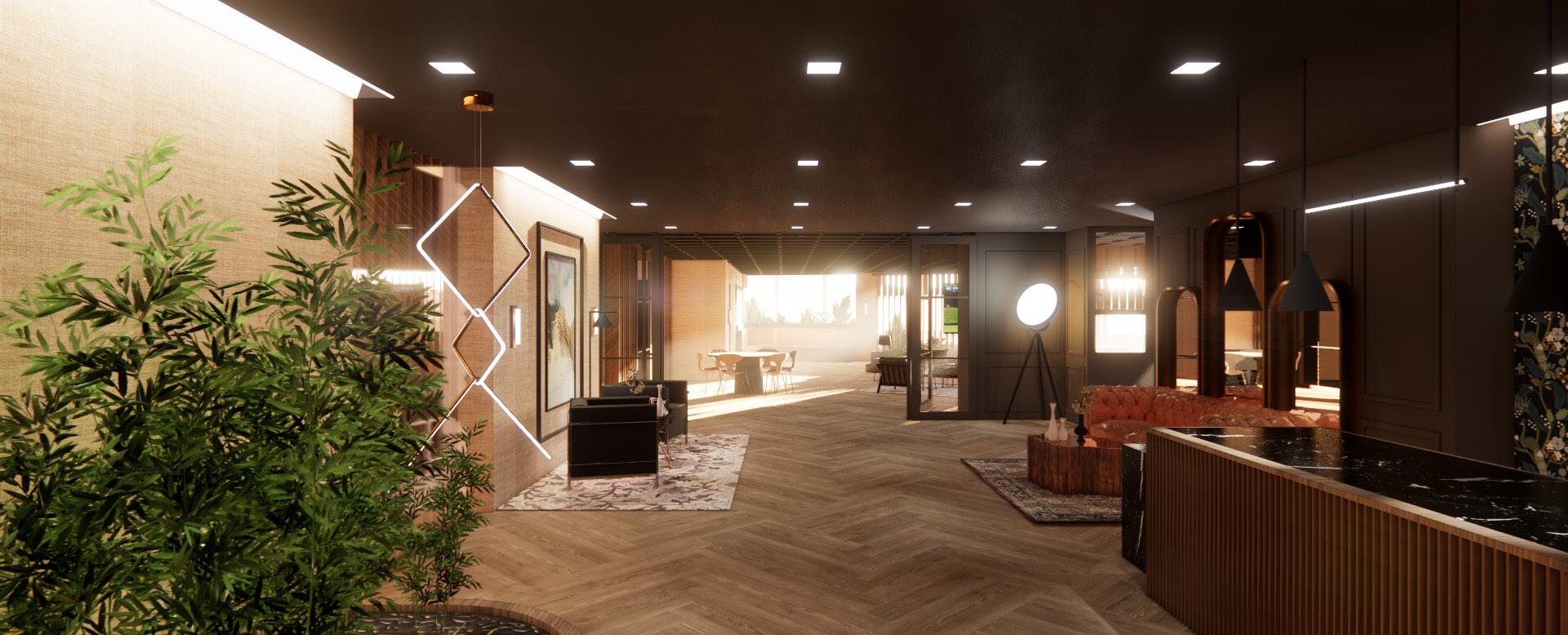 We crafted an overall ambiance that was dark and moody, inspired by theatrical elements. This aesthetic choice seamlessly aligned with our client's desire to embrace the world of entertainment. However, we also wanted to ensure that the space remained functional and practical for their day-to-day operations.One of the focal points of the design was the lounge, which featured a stunning bar area. Adjacent to the lounge was the lobby, creating a seamless transition into the theater-like conference room. Breaking the traditional division between these spaces allowed us to create a versatile area that could be transformed into a "ballroom" style setting while adhering to code constraints.To further enhance the entertainment experience, we incorporated cutting-edge technology throughout the office. A striking monitor wall and pivoting display surfaces showcased the latest in entertainment technology and provided a dynamic visual experience. Additionally, our client's desire to repurpose their existing boardroom table was fulfilled. We carefully located and designed a space that seamlessly integrated with the overall aesthetic of the boardroom, creating a cohesive and visually captivating environment.