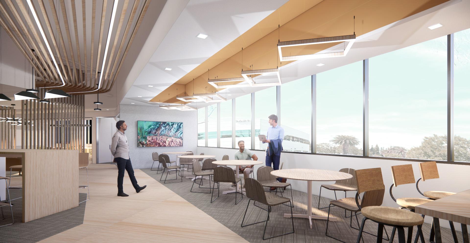 Our starting point was the relaxed beach-front vibes iconic to Alteryx culture. The key design direction was drawn from the soft organic lines found in waves and colors found in sunset-kissed beaches, intertwined with an emphasis on community. Life at Alteryx includes supporting local artists, food purveyors and breweries and the iconic surfboards given to employees as awards. Prioritizing regionally sourced products aided with sustainable choices and mother’s and wellness rooms were integral to the design.