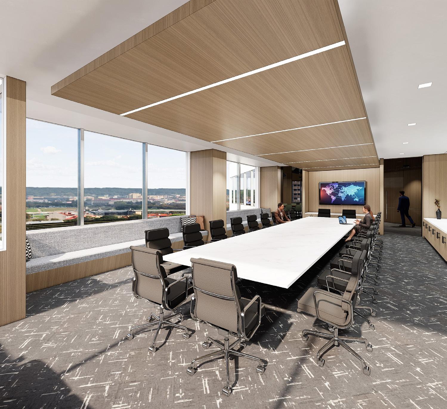 Our task was to create an environment that not only reflected their sophisticated work image but also showcased the breathtaking panoramic view of the city from Century City.To achieve this, we devised a strategic plan that focused on utilizing the lobby and conference rooms as the first point of encounter. These spaces were designed to be open and inviting, using expansive glazings and incorporating sophisticated custom millwork systems for a modern and edgy aesthetic. The lobby, in particular, was carefully crafted to exude intimacy and sophistication, reinforcing AEW Capital's trustworthy reputation.