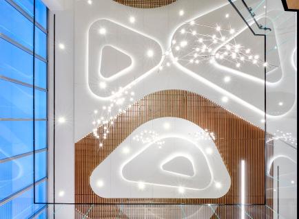 To meet the client's requirements, we meticulously planned designated locations for each department, ensuring efficient workflows and fostering collaboration. Thoughtfully integrated public amenities, including open collaboration areas and inviting pantry/break spaces, provide opportunities for connection and rejuvenation. Notably, the strategically positioned open collaboration spaces, situated at the corner, allowed us to create captivating design features that encourage innovation and interaction.