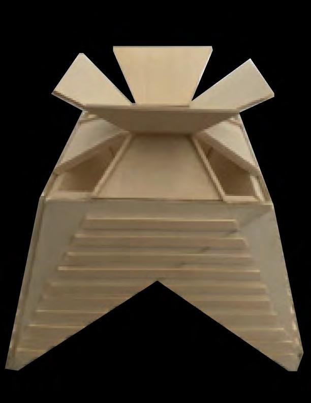 This shelter draws inspiration from the grand pyramids of Egypt and the iconic pyramid structure of the Louvre Museum in France. Located behind the Science Building at CU Denver, it is designed as a temporary resting space for students, providing them with a comfortable and inviting environment. The structure features a unique stepped design on all four sides, allowing visitors to climb up and relax while enjoying the surrounding view. Beneath the shelter, there is an open space where people can run and play freely, making it a versatile area for both rest and recreation. Additionally, the shelter is carefully designed to provide shade, offering protection from the intense sunlight and creating a cool, shaded retreat for those seeking respite from the heat