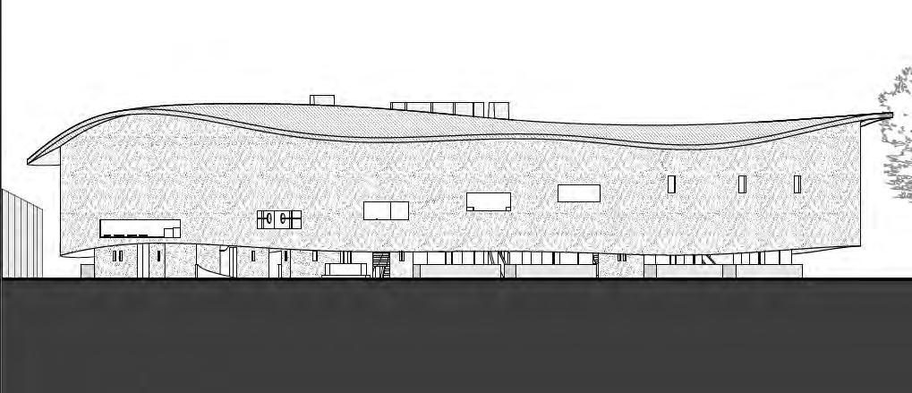 The location of the center is strategically chosen within the walls of the hill and track at Confluence Park, blending harmoniously with its natural surroundings. Additionally, the center is designed to be environmentally friendly, utilizing renewable resources for its energy needs. Electricity and heating are sustainably generated by harnessing the power of the nearby river, ensuring minimal environmental impact while promoting a self-sufficient and eco-conscious creative environment.
