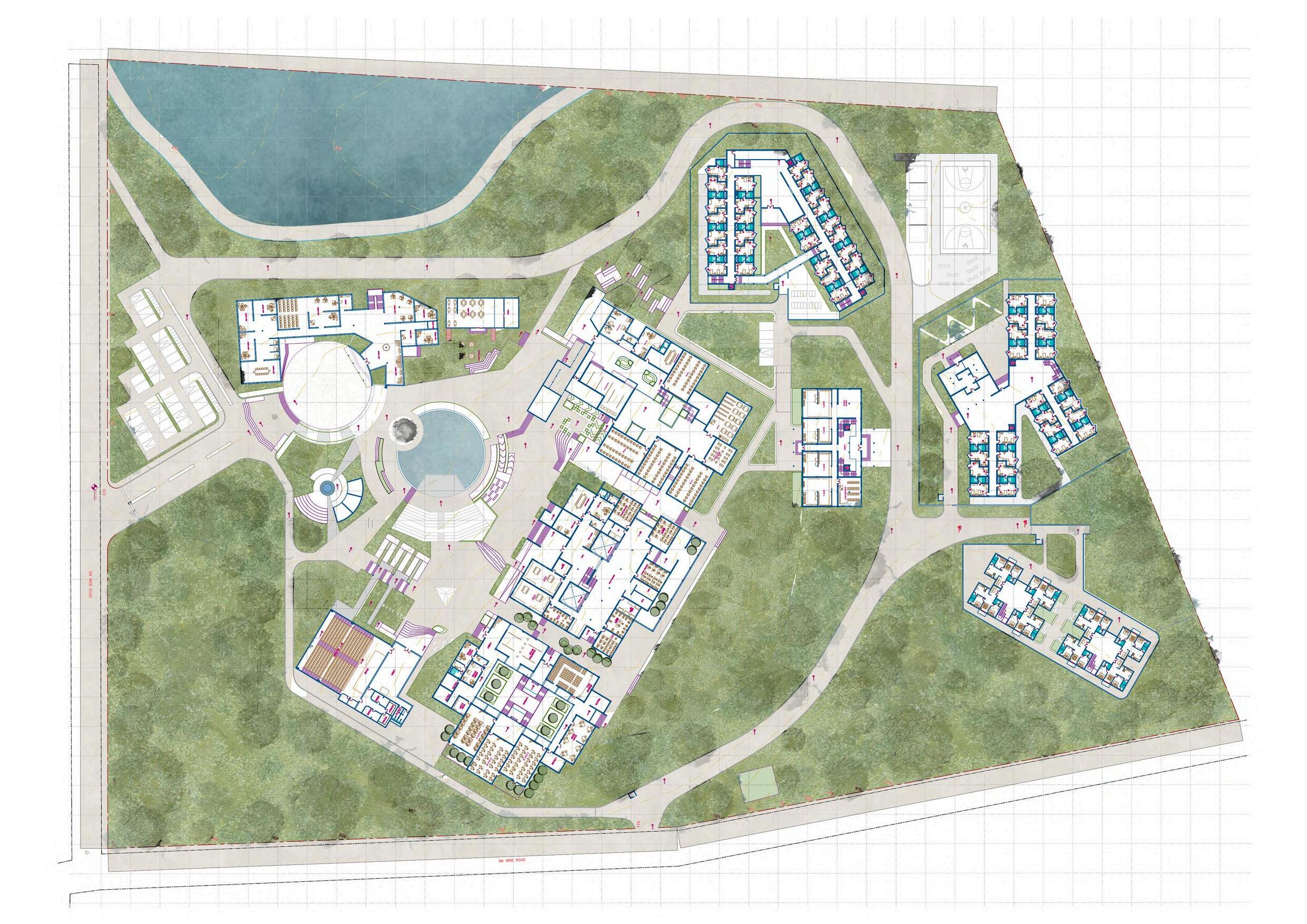 The campus represents students growth, where each building/space represents a distinct phase in the student’s journey-linked by the pathways flowing between built/unbuilt spaces, reflecting the students progress as they move from one place to another.