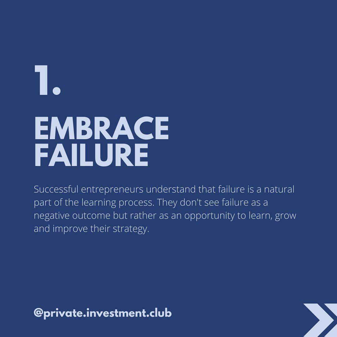 Embrace failure: Successful entrepreneurs understand that failure is a natural part of the learning process. They don't see failure as a negative outcome but rather as an opportunity to learn, grow and improve their strategy.