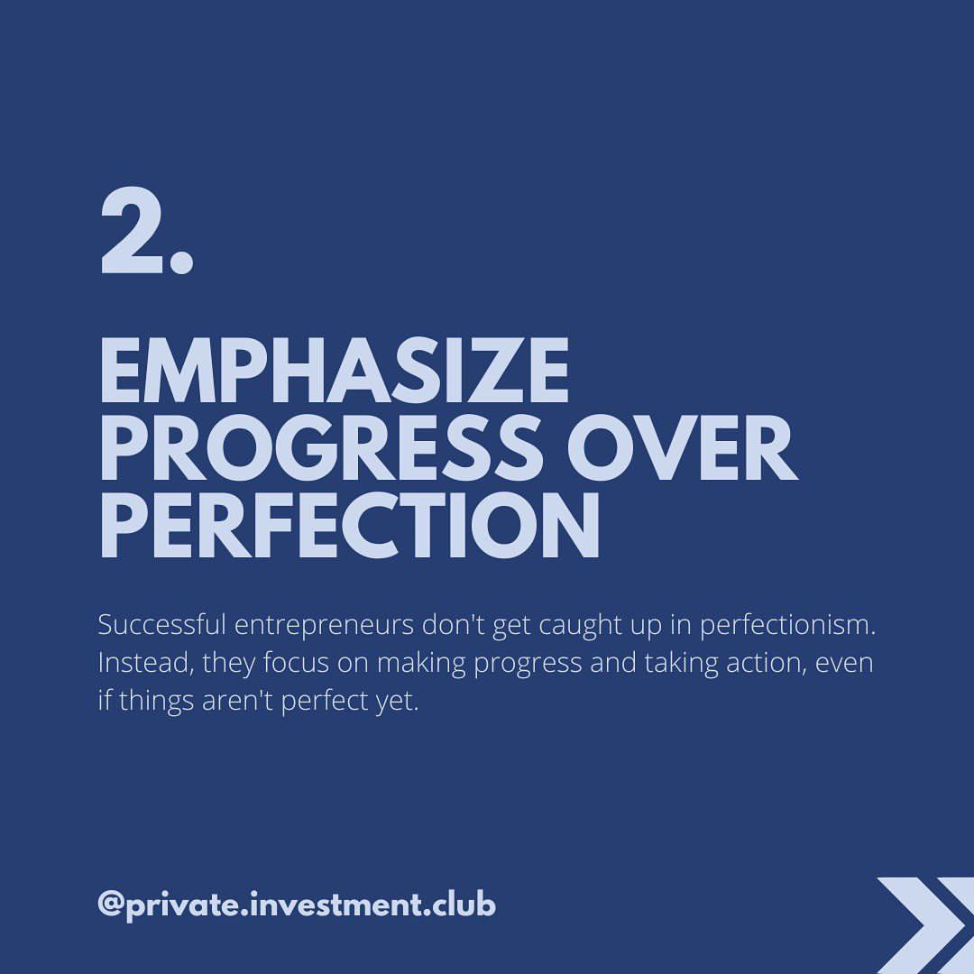 Emphasize progress over perfection: Successful entrepreneurs don't get caught up in perfectionism. Instead, they focus on making progress and taking action, even if things aren't perfect yet.
