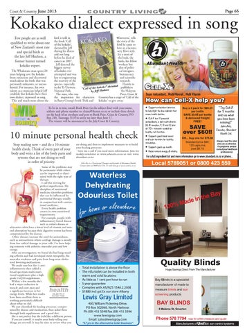 Watercress’, tells bird is told in the story of the the book ‘Call bird he came to of the kokako’, love in a laconic, dictated by Jeff very Kiwi style. during his illness It’s a story of and not long the bush, the before he died of birds, his fellow cancer in 2007. Jeff directed the workers but biggest survey also of politiof kokako ever cal intrigues, attempted and was bureaucracy key to engineering and scientific the recovery of the research. species, especially Thanks to ted cta kako” di in the Te Urewera publishers “Call of the ko dson National Park. the Halcyon by Jeff Hu The man, who was Press, Coast & the inspiration for characters Country has a copy of ‘Call of the in Barry Crump’s book ‘Pork and kokako’ to give away.