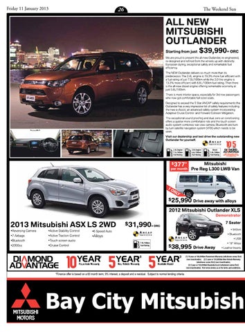 vailable at available atparticipating participatingMitsubishi Mitsubishidealers dealersfrom from11June Juneuntil until31 31July July2010 2010or orwhile whilestocks stockslast. last.Colour Colourchoice choicesubject subjectto toavailability. availability.Offer Offerexcludes excludesOn OnRoad Road up upto to$850 $850which whichconsists consistsof ofvehicle vehicleregistration, registration,WOF, WOF,5,000km 5,000kmRoad RoadUser UserCharges Charges(where (whereapplicable) applicable)and andaafull fulltank tankof offuel. fuel.Savings Savingsquoted quotedare areoff offRRP RRP xclude ORC’s). exclude ORC’s).Offers Offersnot notavailable availableto tomajor majorflfleet, eet,lease, lease,rental rentalor orGovernment Governmentpurchasers. purchasers.Contact Contactyour yourlocal localMitsubishi Mitsubishidealer dealerfor fordetails. details.