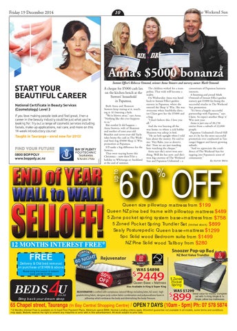 65 Chapel street, Tauranga (In Bay Central Shopping Centre) / OPEN 7 DAYS (10am - 5pm) Ph: 07 578 5874 *12 Months Interest Free is available on Q Card Flexi Payment Plans. Minimum spend $999. Normal Lending criteria apply. #Comfort guarantee not available in all models, some terms and conditions may apply. Beds4u reserve the right to amend any misprints or error with in this advertisement. All stock subject to prior sale.