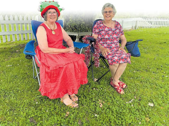 Bonnie Hebenton and The Reverend Deborah Garrett sitting where the Carols on the Lawn will take place this Sunday, December 14, at 4pm. Photo / Rosalie Liddle Crawford