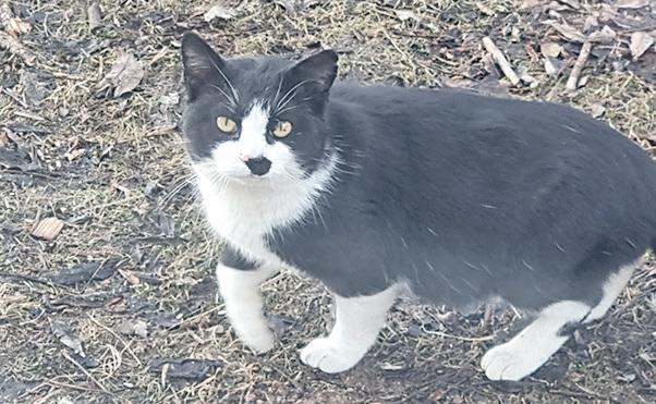 En skygg och hungrig katt håller till hos oss om dagarna.