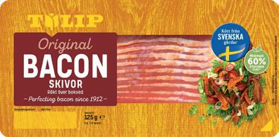 MAX 2 KÖP/HUSHÅLL. BACON/EKOLOGISKT BACON Sverige/Tulip. 100-150 g. Jfr-pris 83:33-125:-/kg.