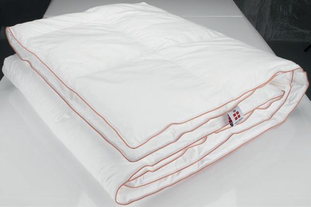 Exklusivt täcke med luftig fyllning av 70% Fossflakes/ 30% silikoniserad bollfiber, 1150 g. Överdrag i 100% bomull. Tvätt 60°C. Inkl. förvaringsväska. 150x210 cm 2199:-