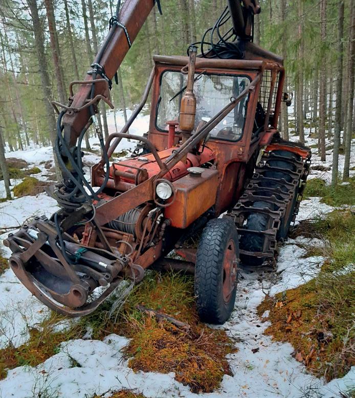 Skogsbruk med maskiner och redskap från förr