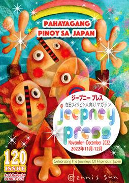 JEEPNEY PRESS welcomes articles of interest on Filipinos in Japan. Please email any photos, drawings, and other materials that you would like to accompany the article. Submissions can also be sent by postmail. Photos, drawings and other materials will not be returned unless sent with a self-addressed, stamped envelope. Deadline is one month before publication. We reserve the right to edit or omit any submissions.