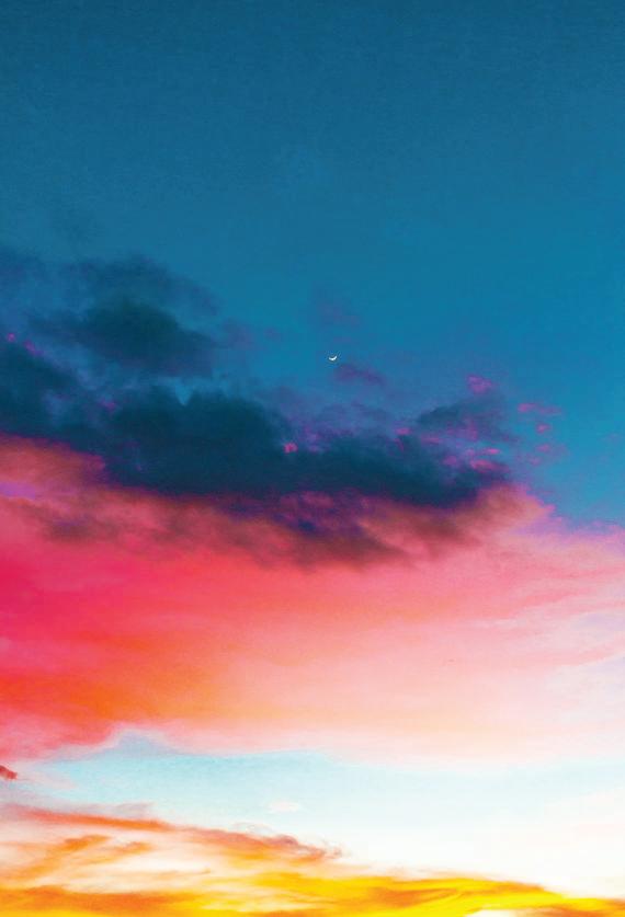 The relationship between movement and natural elements is celebrated in a light sculpture entitled Dissipative Birds in the Wind. The visual imagery in yellows, greens, blues and reds is in uenced by the birds that y about the area. It reminded me that the apping of birds’ wings a ects the air around it. When no birds y, there is no light seen on the tall structures that stand above the pond waters.