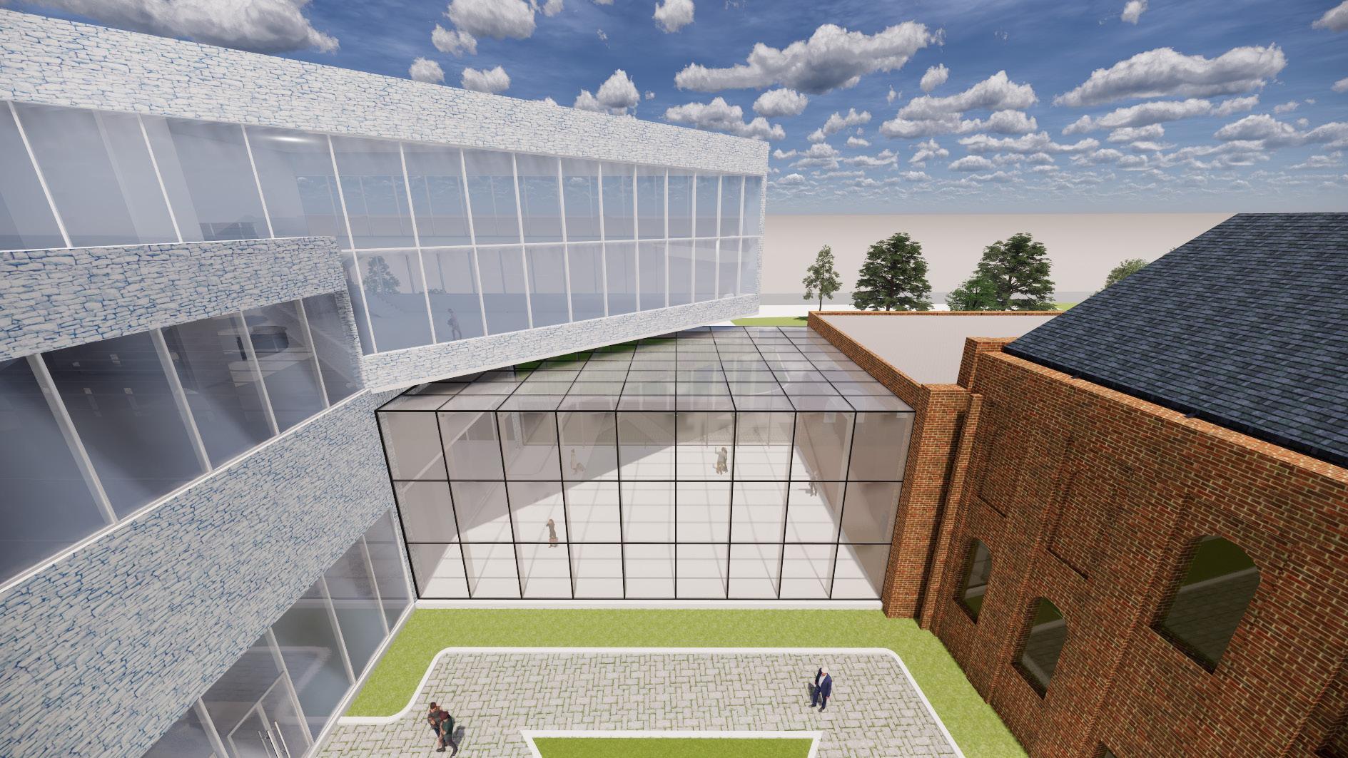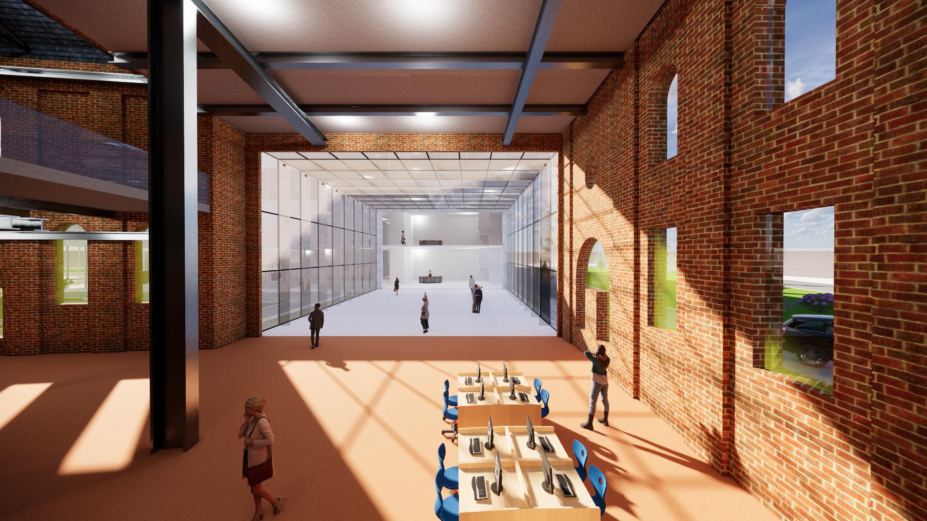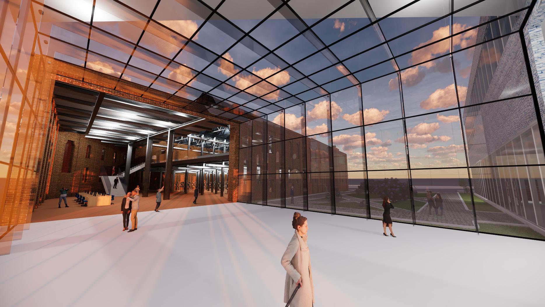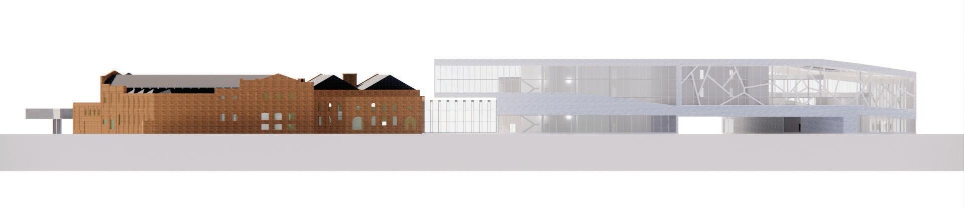 To maximize the spatial and historical significance of the existing buildings of the Grimsby Ice Factory, a design has been made that also adds a new volume to the building. This volume is designed to act as a physical bridge between The Grimsby Ice Factory and Grimsby Town, which is cut off by the railway. This is achieved by the design of a grand stair inside the new volume, which provides a physical route for users to naturally enter the Grimsby Ice Factory. In addition, outdoor stairs have been designed for both the existing and extended buildings, so that users can directly experience the spatial value of the building by walking around on their own.