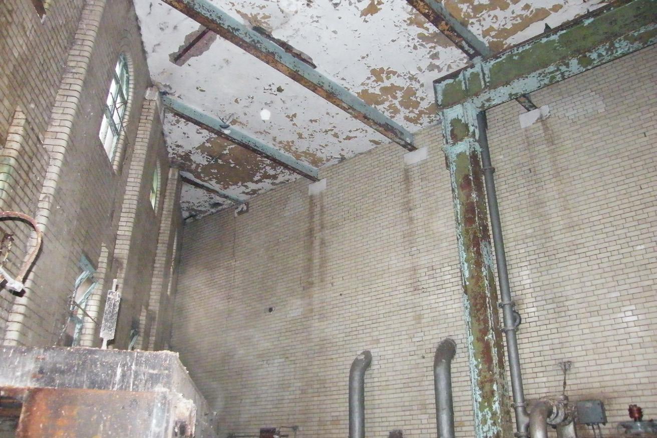The Grimsby Ice Factory has a varying maximum height and number of floors for each space. The Tank rooms have the highest floor height because the main machinery of the factory was lo-