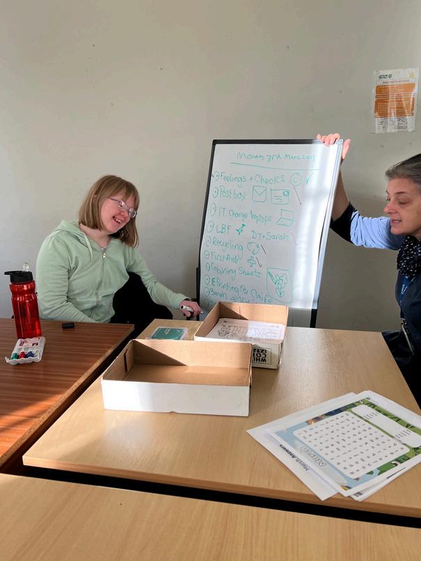 I check the post box for letters. I like sorting out the post and chattingwiththeAdminteam.Ialsolikedoingtherecycling.