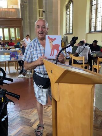 Anyone who wants to play bingo, comes to the table at the Sunny Afternoon Club and then I call out the pictures. I ask for onelineorafullhouseandthentheysayâBingo!â Imustshoutsoeveryonecanhear.