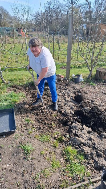 I do different things at the allotment like digging, weeding, wateringandplanting.