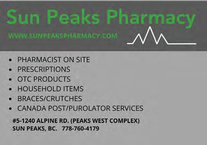 For comments, questions and concerns contact us at: brandi@sunpeaksnews.com Visit us: sunpeaksnews.com 250 578 0276 editor@sunpeaksnews.com 213 - 1130 Sun Peaks Rd. Sun Peaks, B.C.