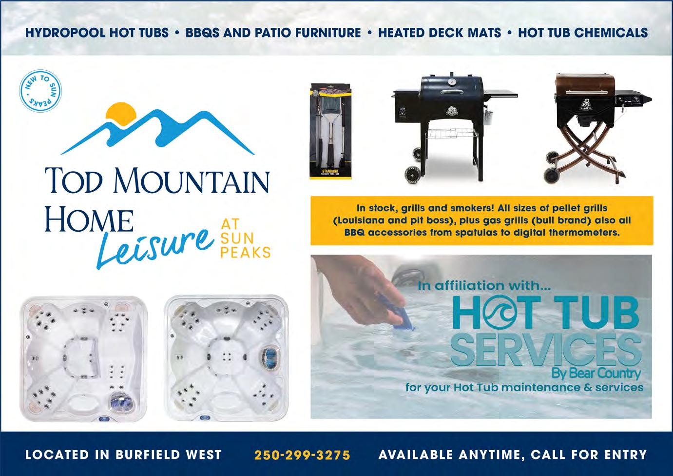 sunpeakshottubs.ca | (1) 250-578-6969 | hottub@bearcountry.ca Repairs | Regular Servicing & Water Chemistry | Start-up & Shut-Down | Sales TRUSTED BY HOMEOWNERS IN SUN PEAKS SINCE 1995 OUR CERTIFIED ON-MOUNTAIN TEAM ARE HERE FOR YOU 24/7 Monthly Hot Tub Service Rates: Summer $90 | Winter $135 November 18 - December 15, 2022 Vol. 20, Issue 11 sunpeaksnews.com free 6. Local firefighters awarded for service.