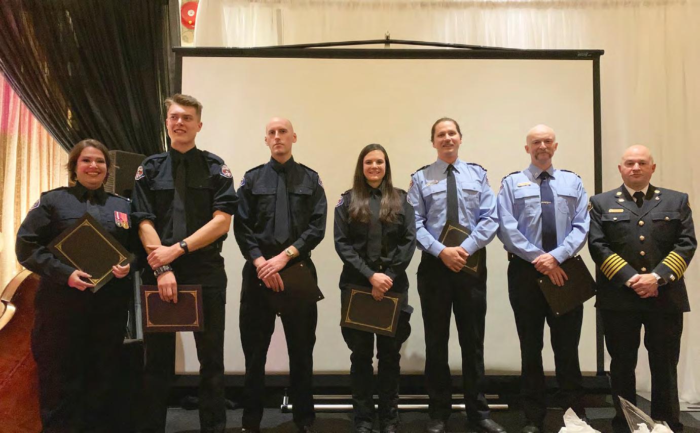 The first group recognized were those who completed the National Fire Protection Association (NFPA) 1001 certification, which included Jacob Brock, Robin Kierstead, Charlie Kinloch, Tyne Roberts and James Griffiths.