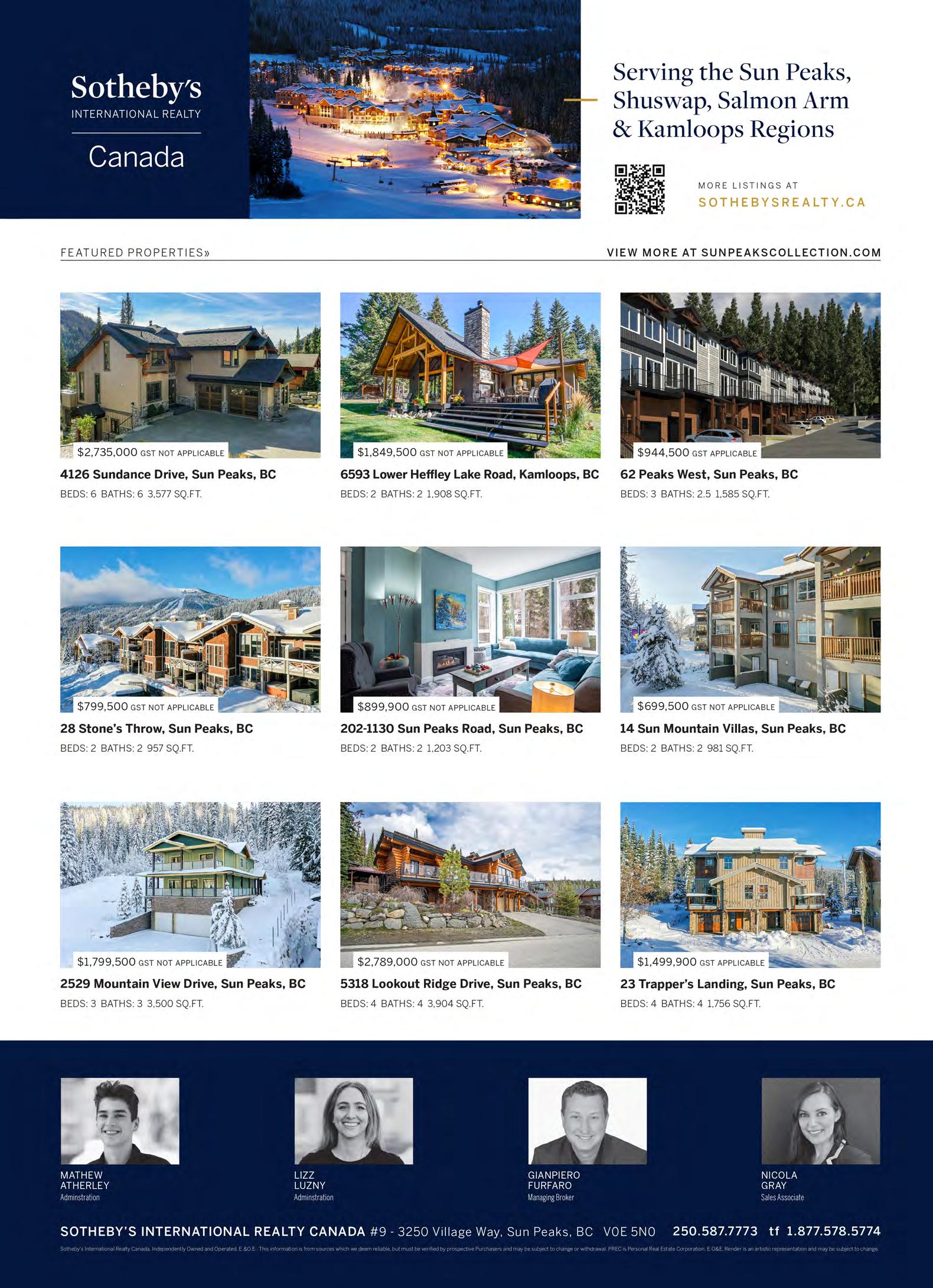 “Sun Peaks is really a destination that’s getting on the map,” she said. “For luxury vacation homes, [properties] are still affordable.”