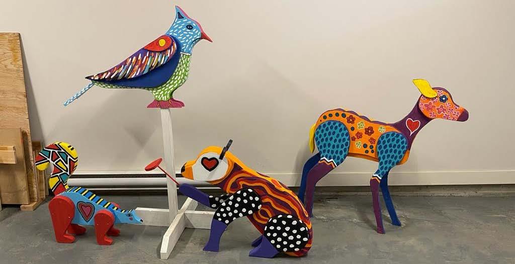 brought those animals to life together as a team!” Chained to trees at strategic points along the trail in winter, the four figures will be stored in the off season for weather and theft protection in the Nordic Club container - itself a beautiful piece of Zuzy Rocka art.