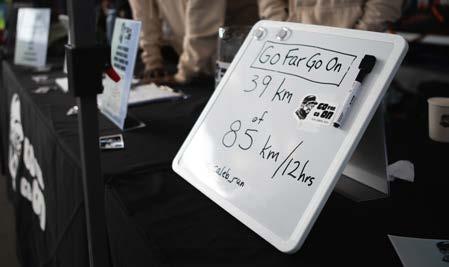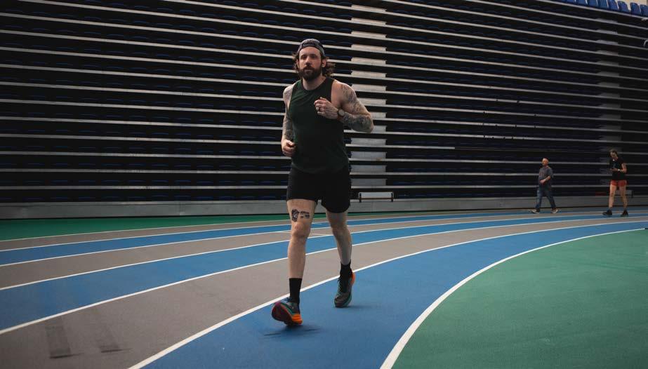 Raising funds for the Canadian Cancer Society, Caleb English accomplished an 86 kilometre run at the Tournament Capital Field House.