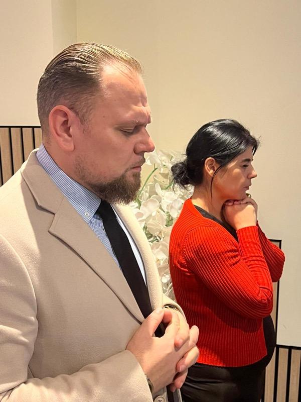 Pastor Mike and Pastor (Mrs) Boma Nwanegbo praying for Deacon Milano and family