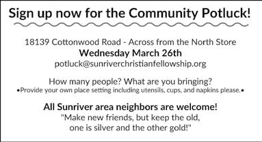 Sunriver Christian Fellowship is located at 18139 Cottonwood Road across from the Marketplace store. Services are at 10 a.m. every Sunday. For more information go to sunriverchristianfellowship. org.