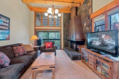 SUNRIVER | Escape to the enchanting turnkey 22 Wildflower, a truly unique 3 story, 2 bed /2 bath, UPDATED lodge style retreat nestled along the 12th fairway of the prestigious Meadows Golf Course. Two wood burning fires places.