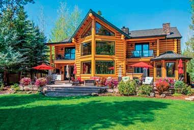 BEND | This luxury log home features a theater room, soaring 25’ ceilings and stone fireplace with one of kind 8’ juniper mantle. The living room’s wall of windows offers unobstructed views & access to a 52’ riverfront deck, with artic spa hot tub and built in kitchen. Finishing touches include the 11’ tall, insulated garage, offering epoxy flooring, storage, and carwash station.