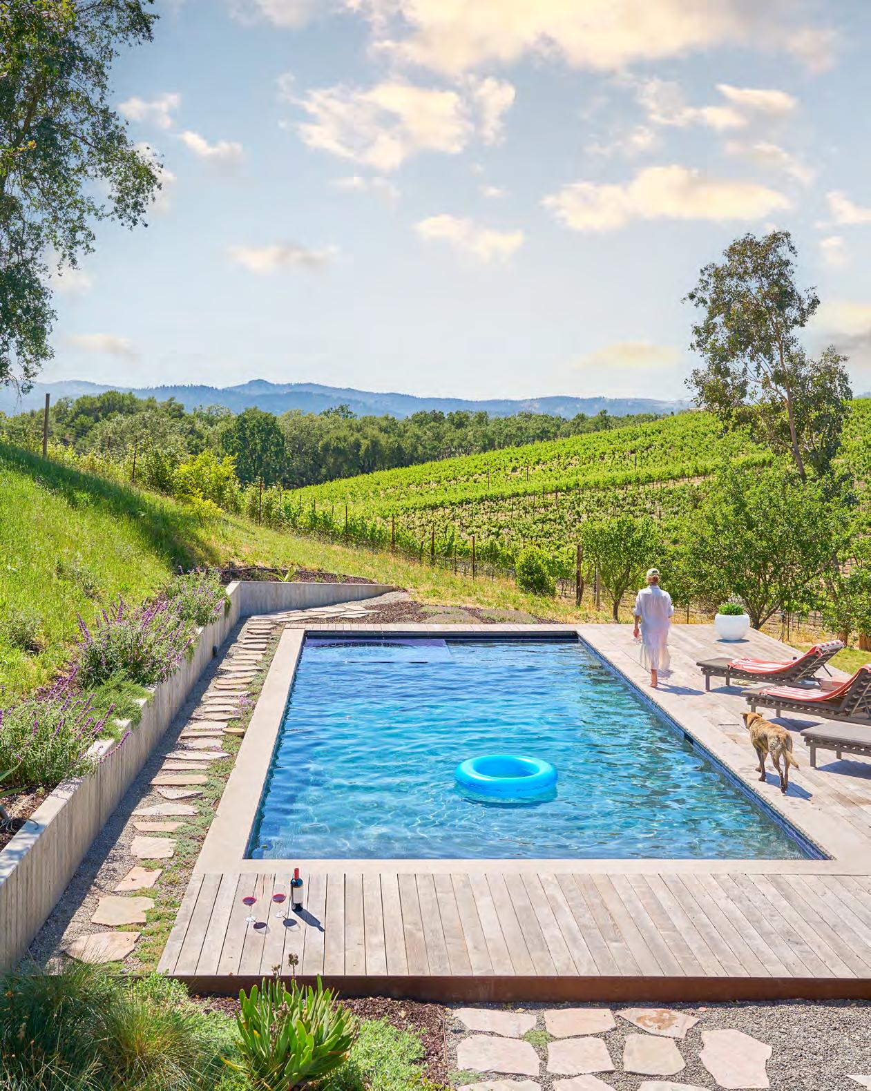 and connected to place.” With the St. Helena property, located on three acres surrounded by vineyards and rolling hills, Brosh set out to create a bespoke version of that vintage hotel spirit, one that’s layered, irreverent, and unmistakably Napa.