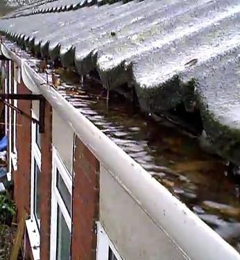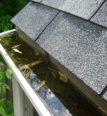 The gutter channel becomes blocked when leaves, dirt, and roof granules accumulate, causing water to back up and overflow the gutters.