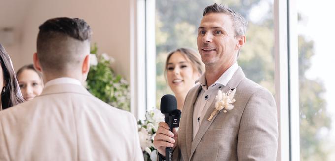 ‘Hi, I’m Dan. A full-time, ABIA award-winning Celebrant & MC based on the Sunshine Coast. For 6 years, I have co-created wedding experiences with couples who are passionate about storytelling, fun, uniqueness, and sincerity. I’ll match your vibe, sense of humour, and dress code. I’ll be entertaining (not cheesy), perform an informal rehearsal with you, and also submit all of the legal’s documents after the ceremony on your behalf too.