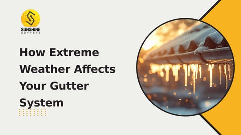 Doyouliveinanareawithheavyrainfallorextremeweather changes?Readthisblogtoknowhowtheweatheraffectsthe guttersystem.Asclimatechangecontinuestoshapeourworld,its effectsarebecomingreadilyapparent.Oneareaoftenoverlooked istheimpactontheguttersystem.Heavierrainsandhigherwinds canresultinhigheramountsofdebrisaccumulation,suchas leaves,twigs,anddirt,whichcanpreventwaterfromflowing smoothly,leadingtofoundationandstructuralissues.AtSunshine GuttersGold,ourexpertteamofprofessionalscanresolveallyour gutterproblemseffortlessly.