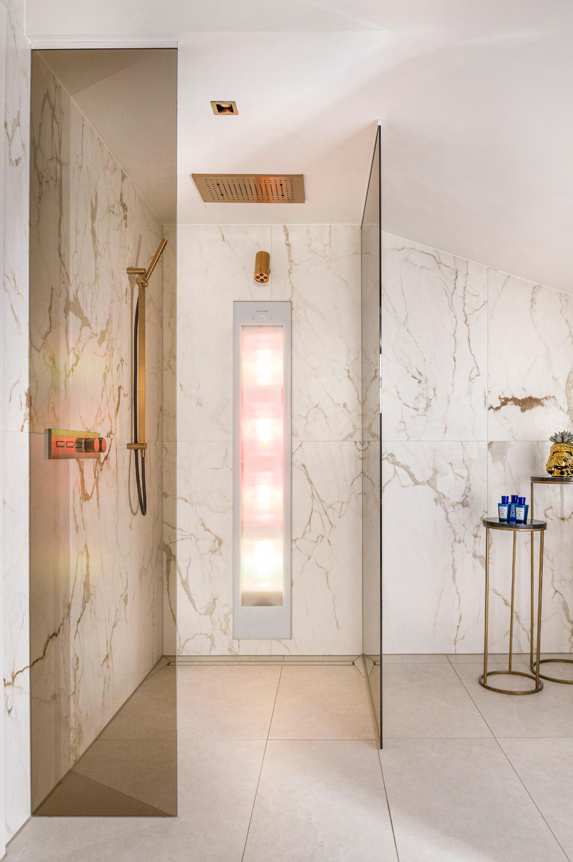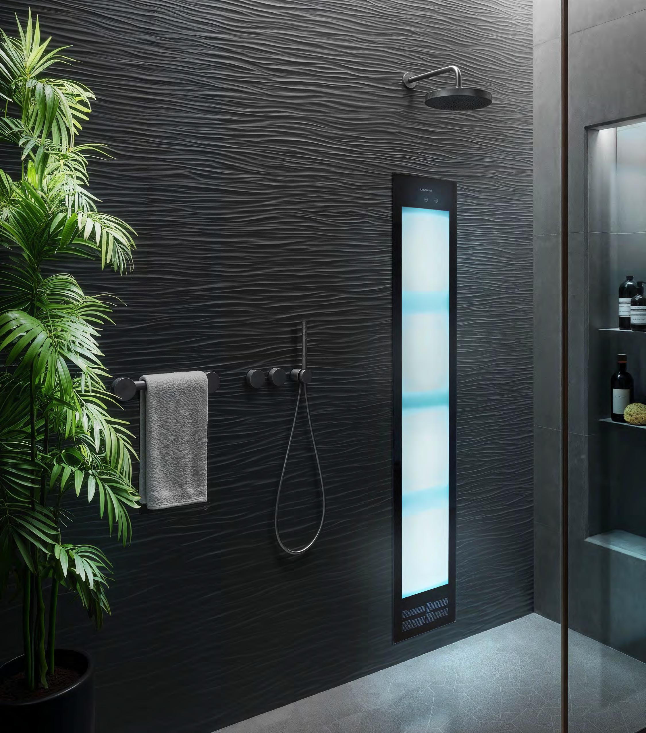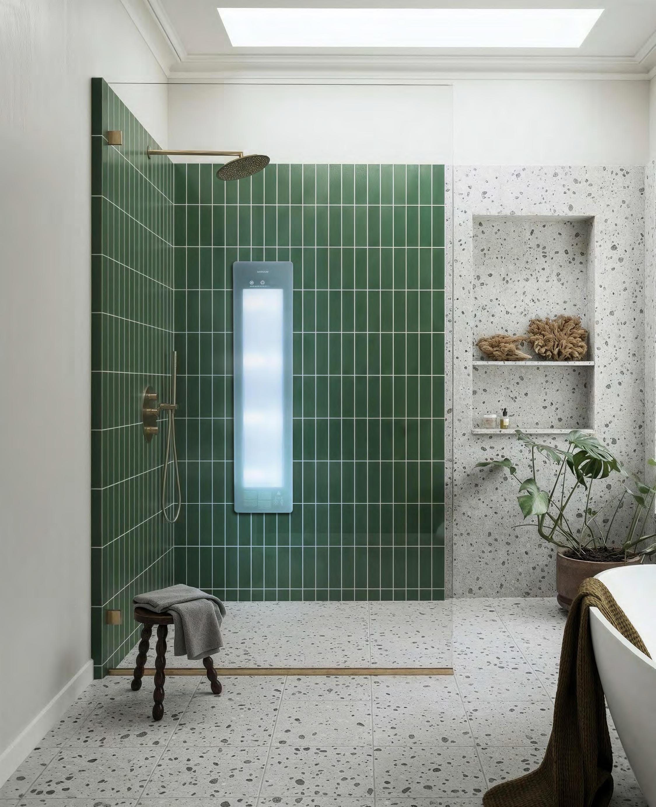 Een Sunshower is niet alleen een stijlvol designobject, maar ook een investering in je dagelijks welzijn. Het gebruik van infrarood- en UVlicht draagt bij aan soepele spieren, een energiek gevoel en de aanmaak van vitamine D. En dat allemaal terwijl je gewoon onder de douche staat. De subtiele en tijdloze afwerking maakt dat Sunshower moeiteloos past in zowel minimalistische badkamers als in warme, klassieke interieurs.