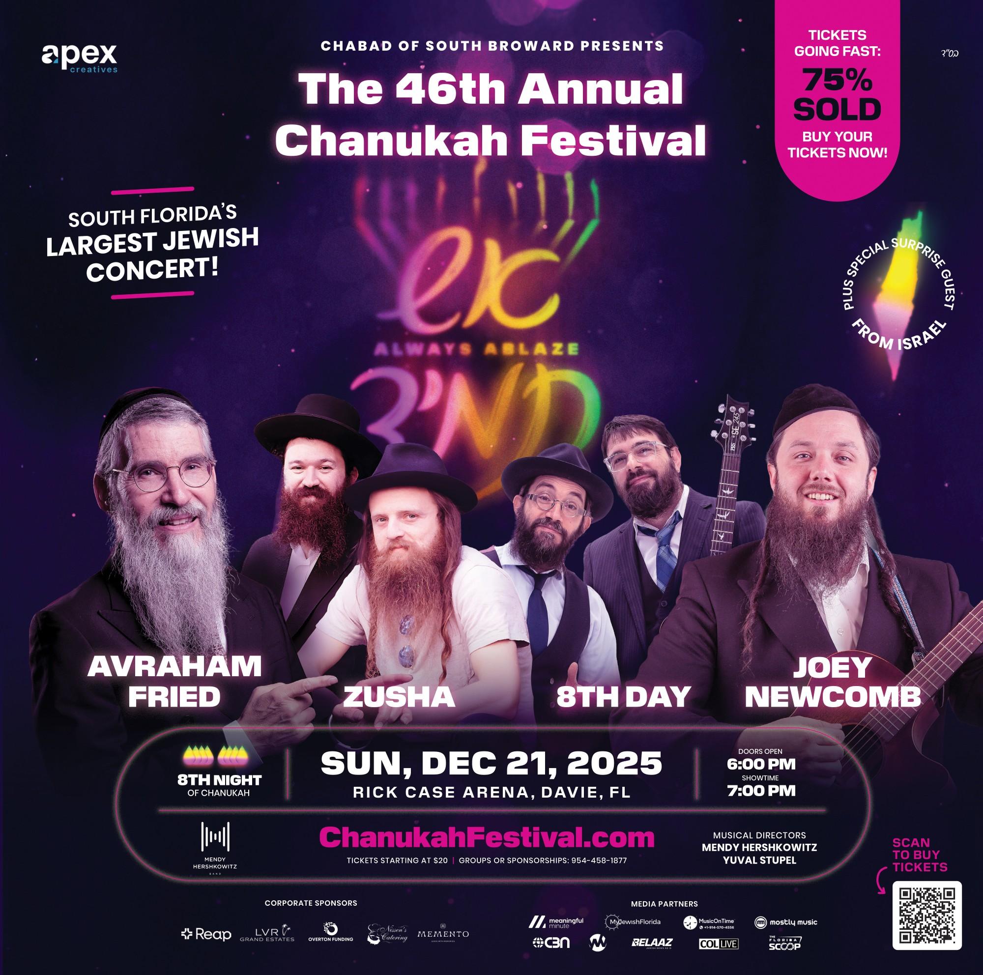 Tickets are selling fast, and availability is limited. To secure your seats, visit: chanukahfestival.com