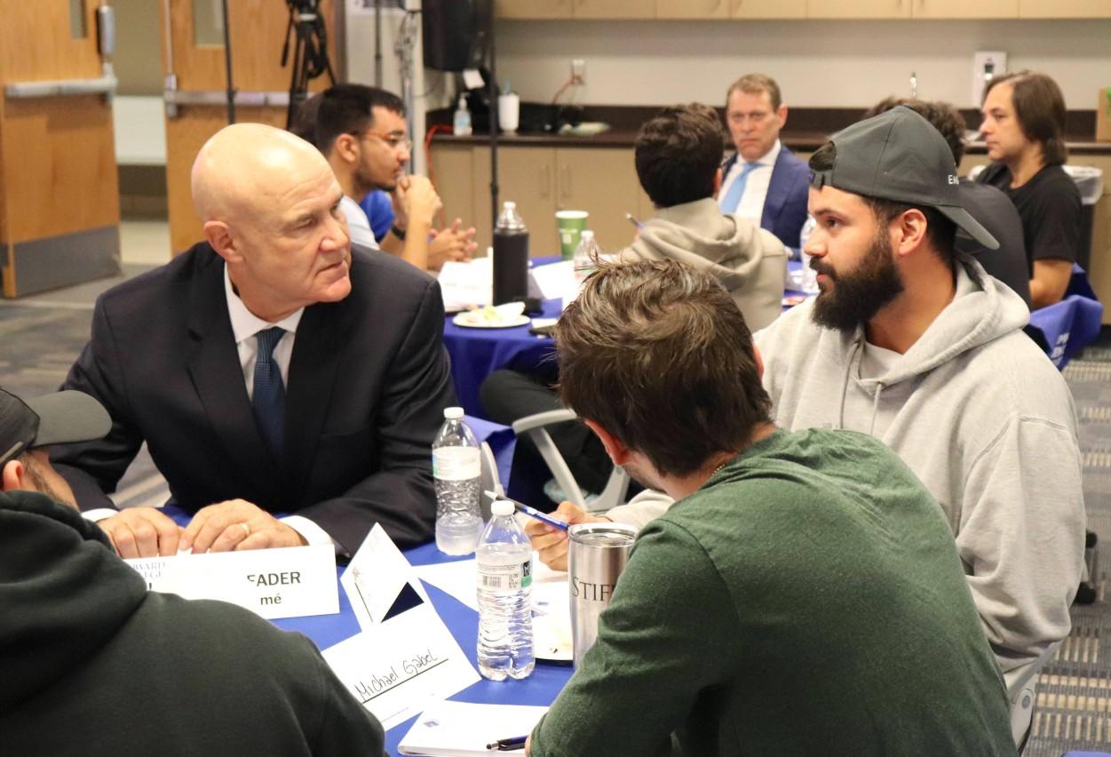 Michael Grimmé, Sr. discussing ethics with Broward College students.