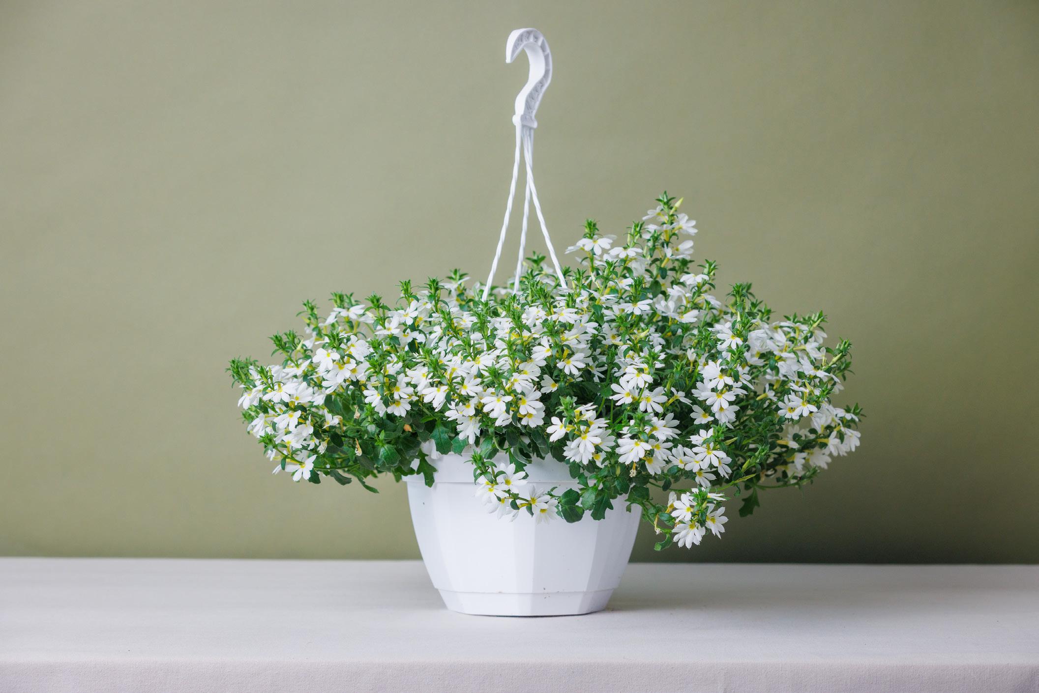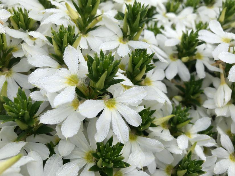 This Scaevola has strong and dense branching capabilities. It is rich in flowering with white and candid small flowers with a yellow dot in the middle. Extreme heat tolerant it blooms early and it is perfect for patio or trailing in hanging pots.