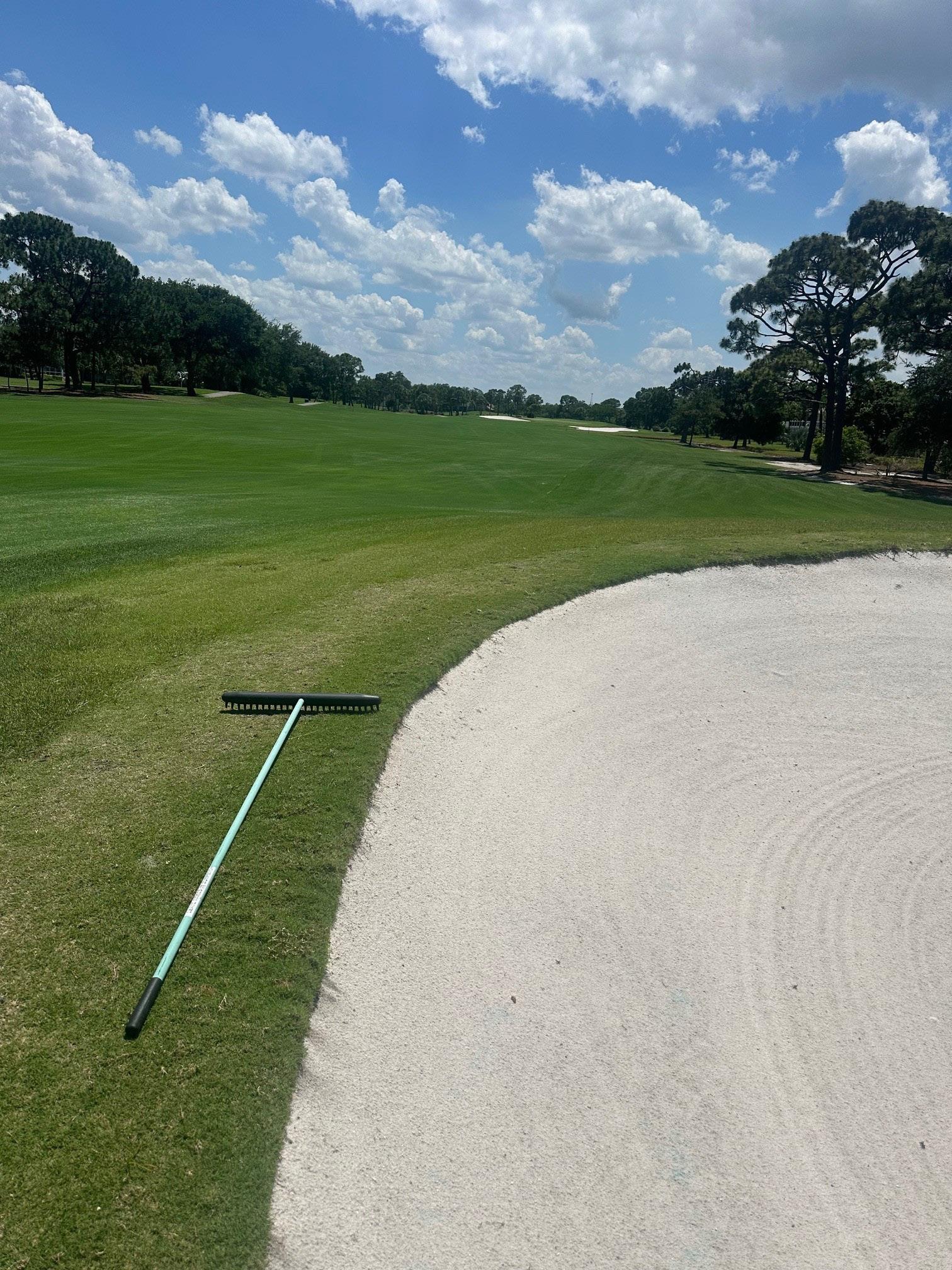 Per the Greens Committee, rakes will now be set outside the bunkers, parallel to the hole, and positioned at the lowest entry and exit points. This change is intended to improve playability and consistency for all golfers and follows the recommendation of the USGA.